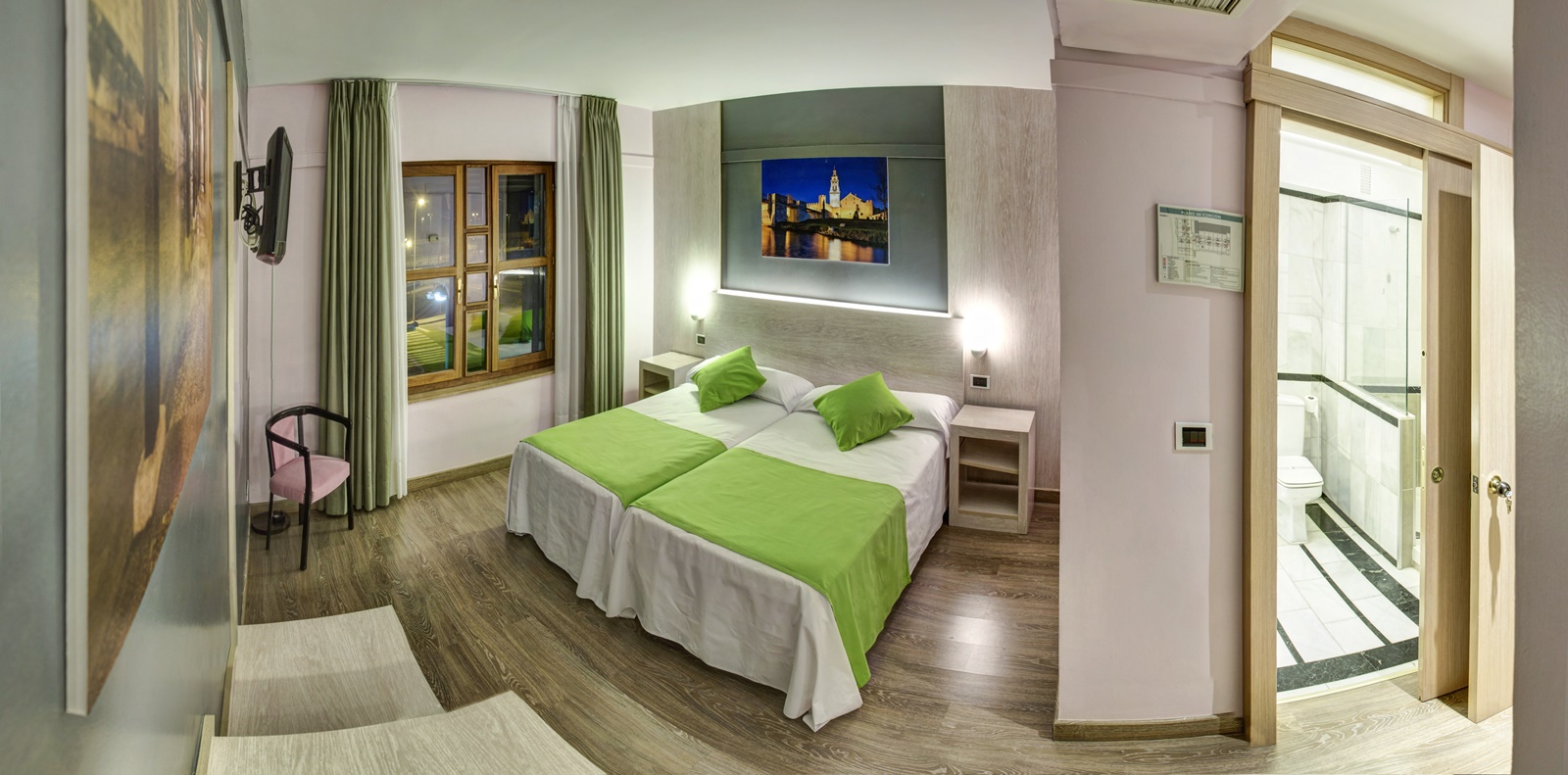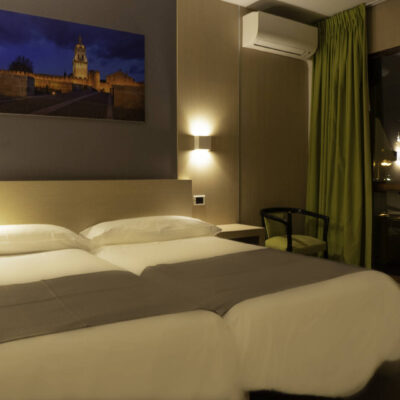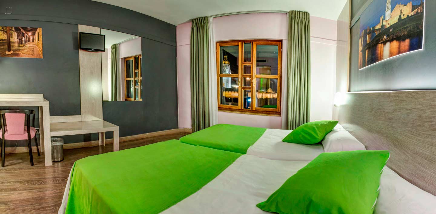 En la habitación Confort con vistas disfrutarás de unas vistas espectaculares a la Catedral te Burgo de Osma. Dede la ventana de esta habitación Confort también podrás contemplar las Murallas, el Castillo y la Atalaya de la villa. Las habitaciones Confort son muy luminosas, espaciosas y acogedoras y están totalmente equipadas con Aire Acondicionado, escritorio, amplio armario y cuarto de baño completo con ducha, secador y artículos de aseo. Todas disponen de Wi-Fi gratuito.